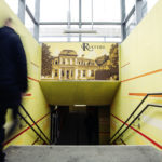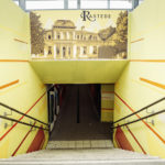 Im Auftrag der Bahn und der Gemeinde wurden zudem die Wandflächen des Tunnel Auf- und Abgangs mit grafischen Formen in warmen Farben gestaltet.