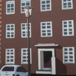 Gegenüber der Wohnanlage in der Wehdestraße in Donnerschwee befand sich einst das VfB Oldenburg Fußballstadion. Unsere Arbeit erinnert an das was hier war und verbindet weitere Wahrzeichen des Stadtteils in den Originalfarben der Wohnanlagenaußenwände.