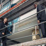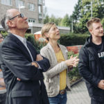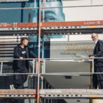 Gesichter als Wandbild eines mehrstöckigen Bürogebäudes