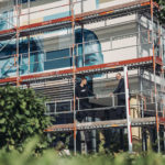 Im Rahmen der Fassadensanierung des VHS-Hauses an der Karlstraße wurden wir beauftragt eine Seite des Gebäudes mit einem Wandbild zu verschönern.