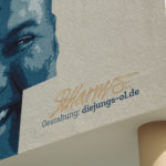 Das Werk zeigt die unterschiedlichen Menschen des Hauses in den Farbtönen der VHS, frei Hand gemalt. Die rechteckige Gebäudeform haben wir aufgegriffen und in den Aufbau des Werks einbezogen, weiter wurden die Farben der Fassade eingebunden.